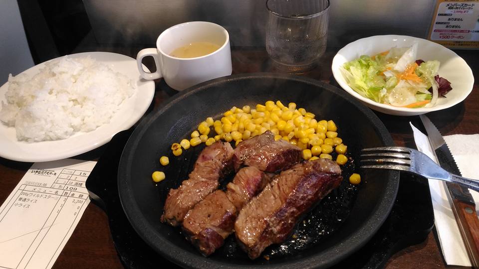 女性も立って食べててビックリ!ランチステーキ200gが1100円。