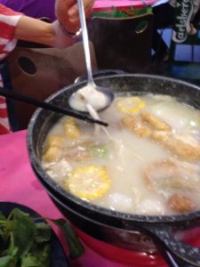 マレーシアにはSteamboatという鍋料理があります。今日行った店は、海鮮鍋二人前で33RM(約1200円)と安く、白湯粥スープで美味しく頂きました。
