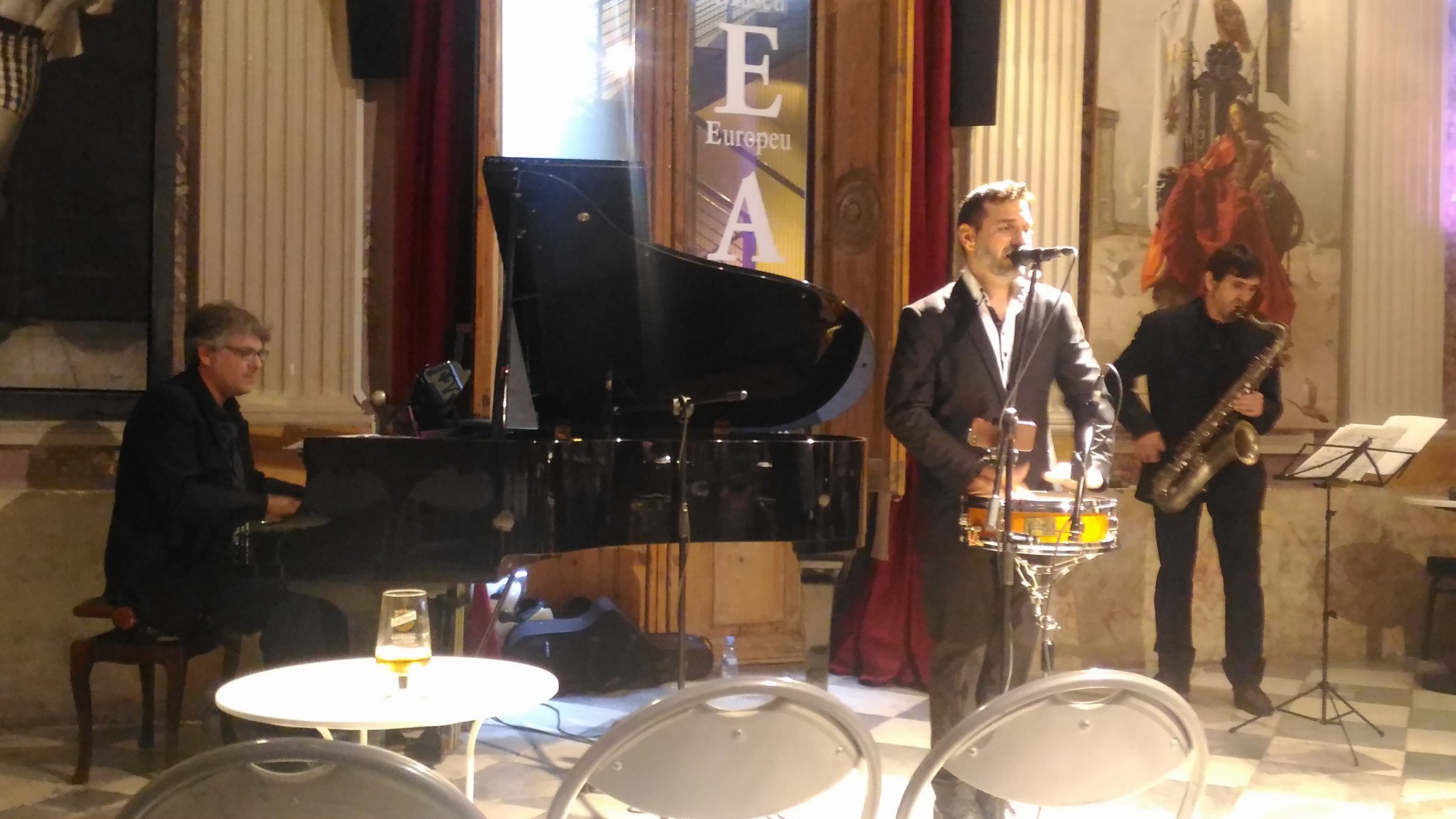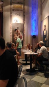 その中の一室でライブスタート。ピアノとテナーサックスとボーカルのトリオでの演奏でした。残念だったのはほとんどの曲はポピュラーでブルースではなかった事(笑)