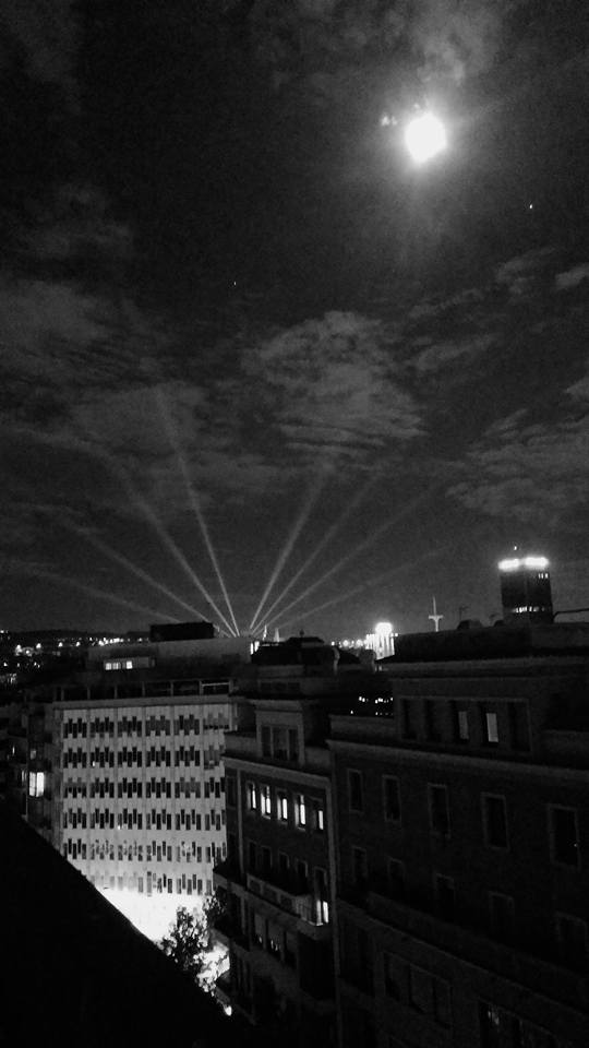 毎晩バルコニーから夜空を眺めている。日付けが変わる時間に決まって真上を飛行機が飛ぶ。西南方向なのでマドリッドに向かうのか?ポルトガル?夜目にも美しい機体なので、想いを馳せる。