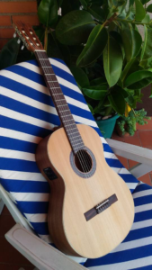 昨日、ついにスペイン製クラシックギターを手に入れた!数日かけて楽器屋を色々と見て回り、クラシックギター専門店で気に入ったものを見つけた。日本に持ち帰った時にも使えるようエレガットギターにした。ということで、子供がおもちゃを買ってもらった時みたいに嬉しいのだ!!