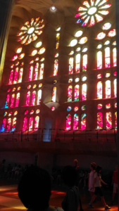 こちらでガイドをされている日本人の女性に案内して頂いたので、とても細かい部分まで良く理解できた。昔と比べると雲泥の差で完成に近づいている。昔螺旋階段で登ったのが、今はエレベーターになり、内部のステンドグラスもほぼ完成し美しい光が差し込んで来る。内部の展示や説明から、ガウディの特徴である曲線の設計思想は、全て神の創造物である自然界から得られている事がよくわかる。そこには人間が作った「直線」は一切入り込めない。