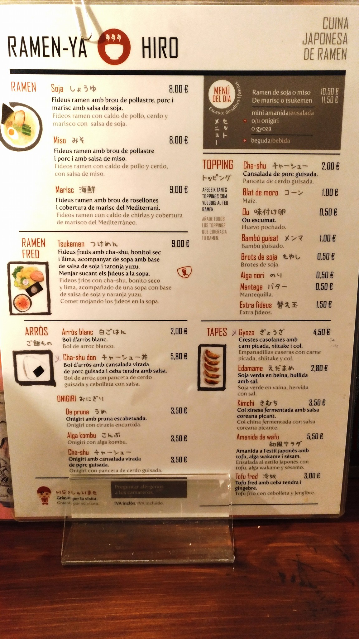 しばらくご無沙汰していたビリヤード仲間のヒロ君が経営する「ラーメン屋ヒロ」に行ってきました。バルセロナで最も有名なこのラーメン屋は相変わらずの大行列。