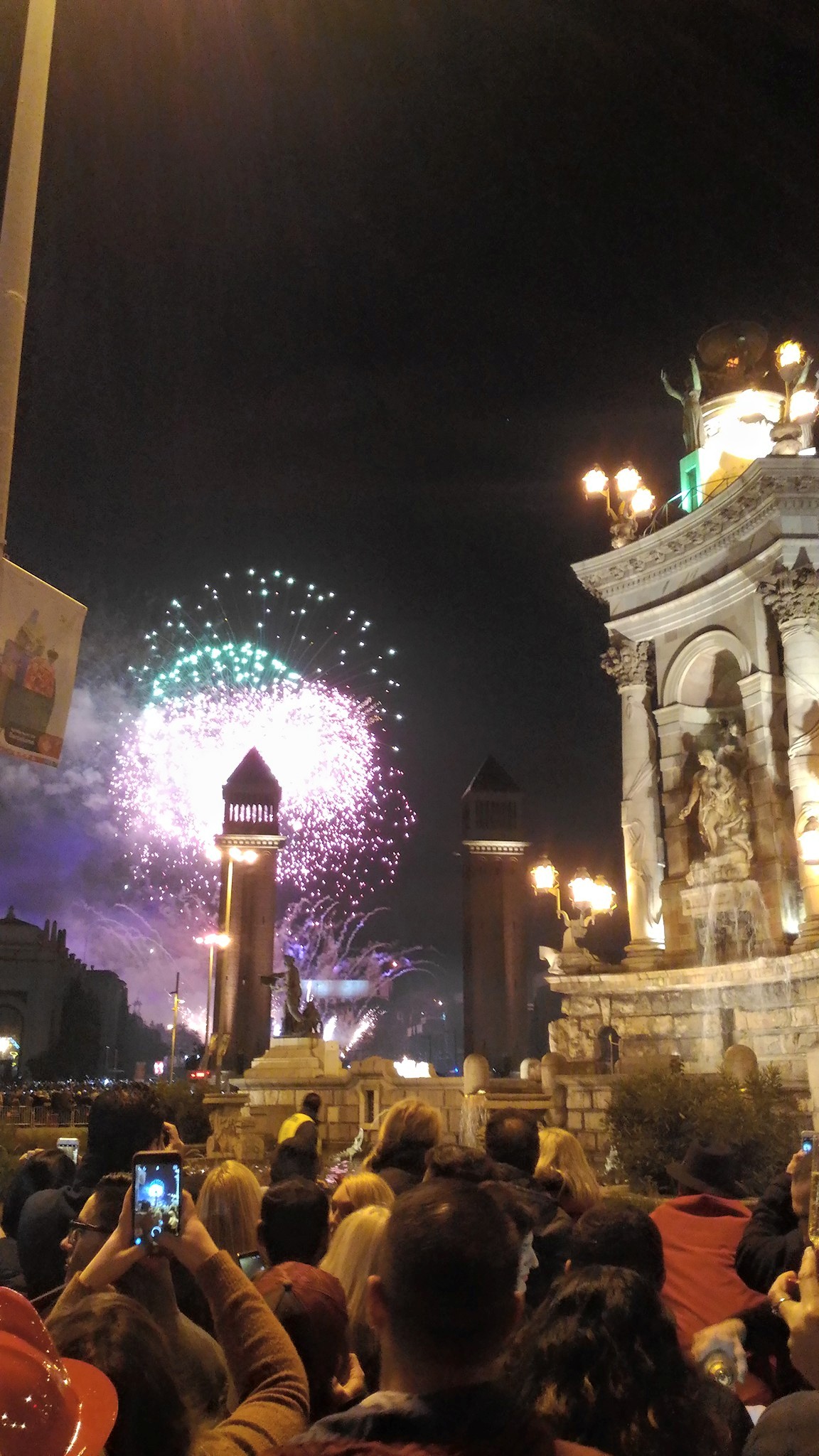バルセロナのスペイン広場でのカウントダウンに行って来ました。凄い人数が集まっていて、噴水広場のはるか手前で身動き不能に!本当に祭り好きなスペイン人です。