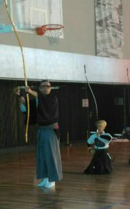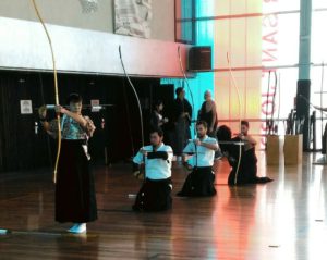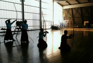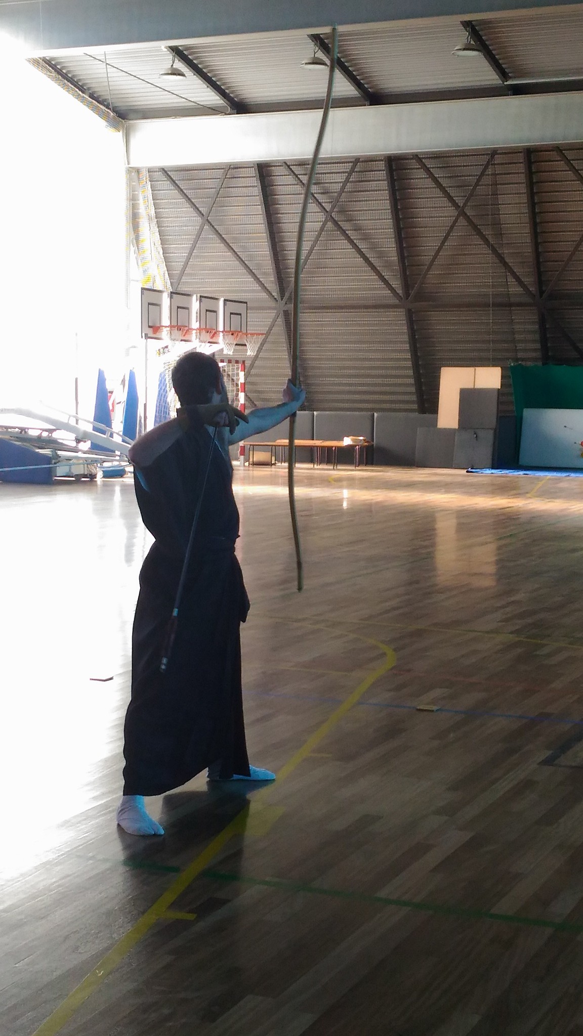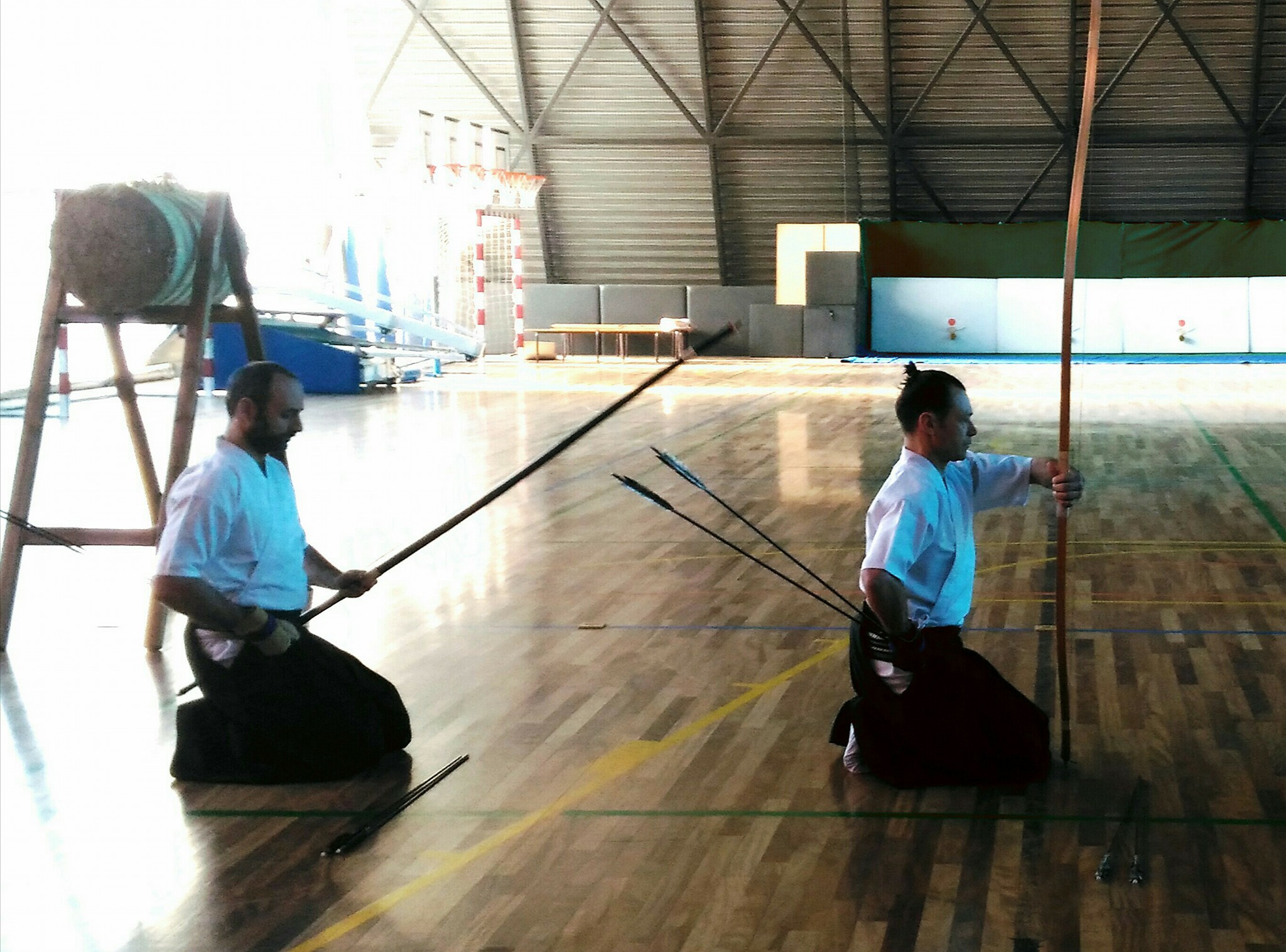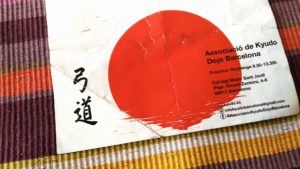 スペインの弓道協会は結構な歴史があり、各地に支部もあるようです。師範は3段の女性!10名ほどのスペイン人が真剣に稽古しています。体育館の中には初稽古用に金的と日の丸の扇子が置かれ、それを目指して矢を射ります。直径10cmほどの的には誰も当たらなかったものの、その厳かな雰囲気は日本精神そのものでした。