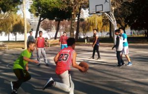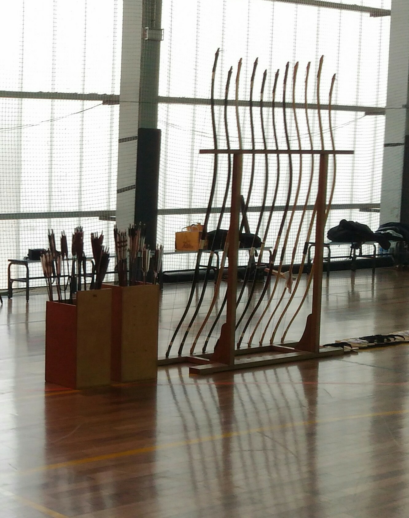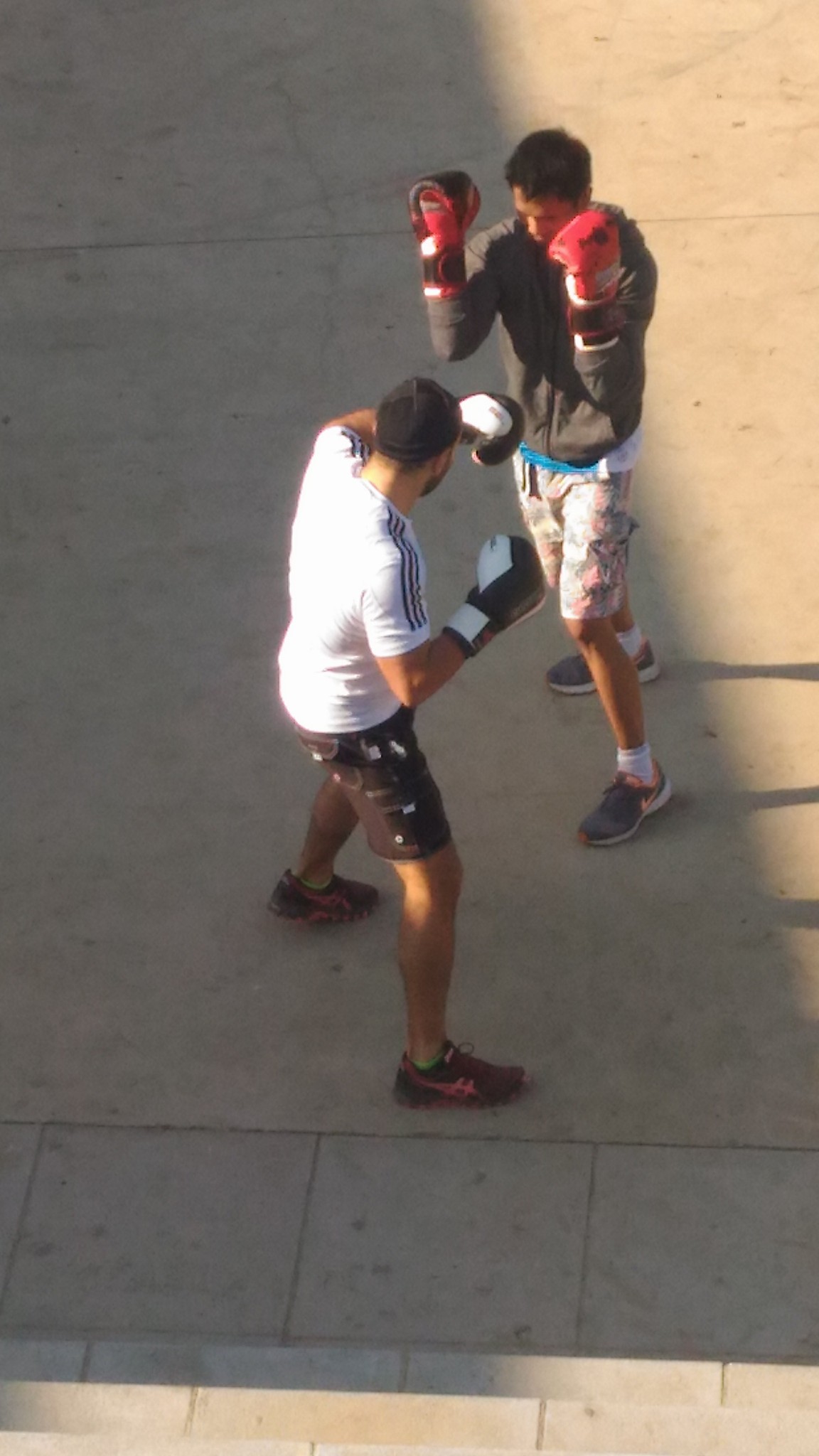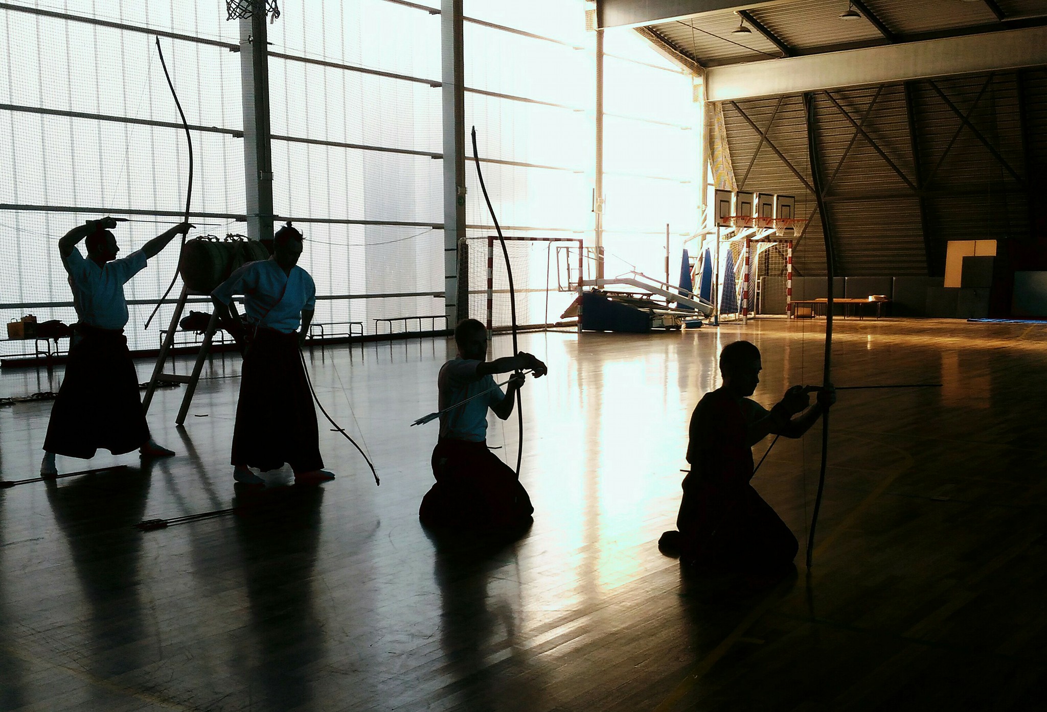 スペインの弓道協会は結構な歴史があり、各地に支部もあるようです。師範は3段の女性!10名ほどのスペイン人が真剣に稽古しています。体育館の中には初稽古用に金的と日の丸の扇子が置かれ、それを目指して矢を射ります。直径10cmほどの的には誰も当たらなかったものの、その厳かな雰囲気は日本精神そのものでした。