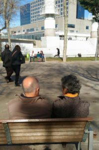 公園の鳩たちは日本と違って人が近づいてもなぜか逃げません。スペイン人は穏やかな性格だから、きっと誰も脅さないからでしょうね。
