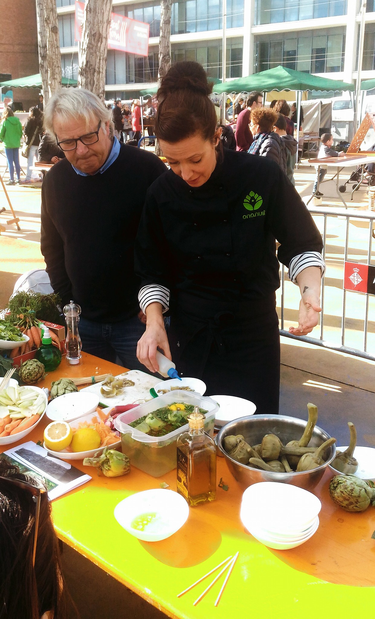 そして小さな公園では有機食材の販売会をやってて、地元の色んな野菜の料理講習会を皆んなで試食しながら熱心に聞いてます。素朴な野菜とオリーブオイルとお酢と塩というシンプルな味付けだけど、家でやってみたらとても美味しいんです。