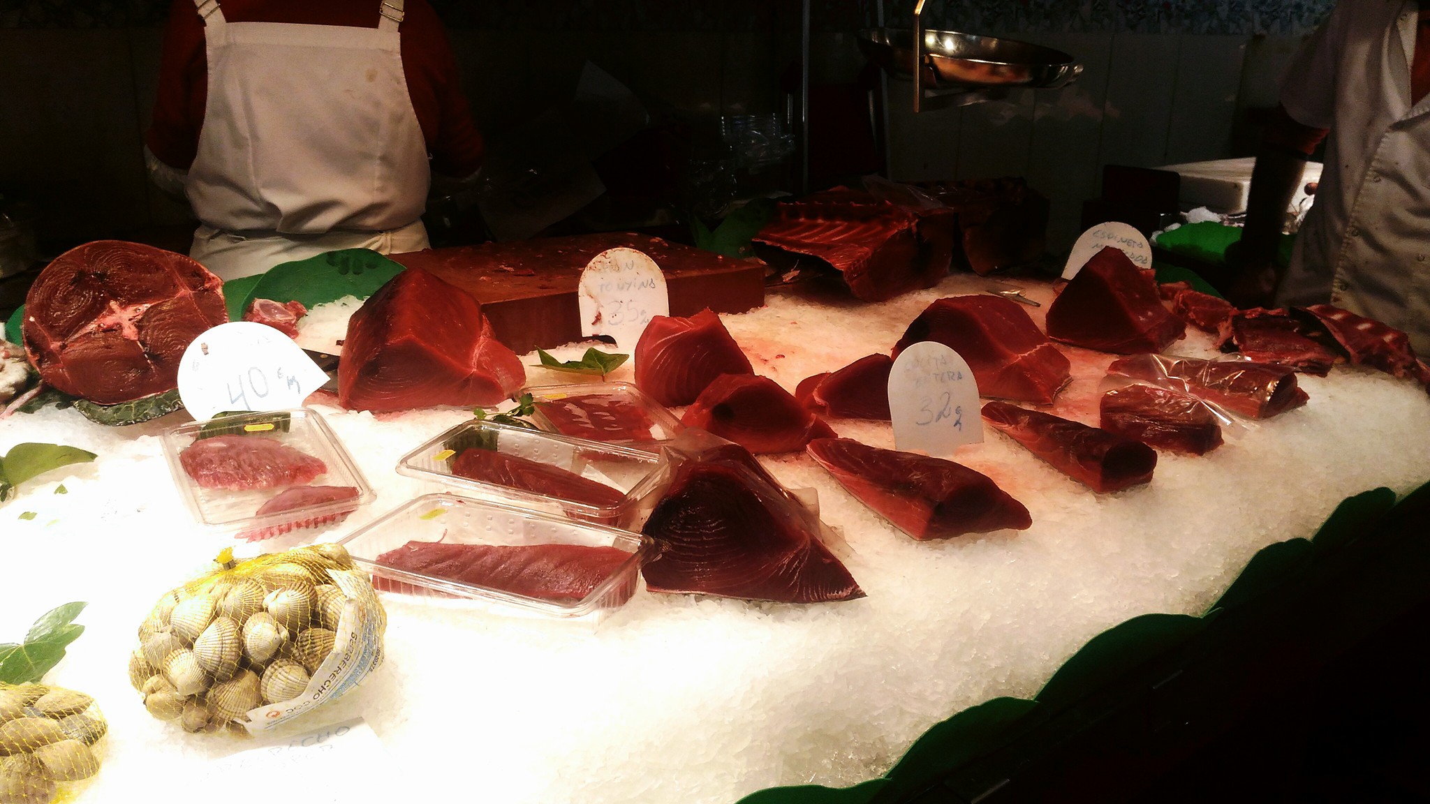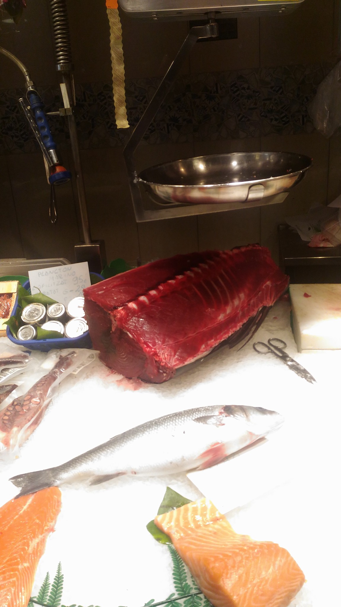 肉、魚、野菜、フルーツなどあらゆる食材が揃っています。中でも目を引いたのが魚屋で、立派なマグロも売ってます。久しく刺身を食べてないので食指は動いたものの、見ていると買う人はステーキみたいに厚く切って貰ってるので、生で食べれるのか心配で、結局買わずじまい。
